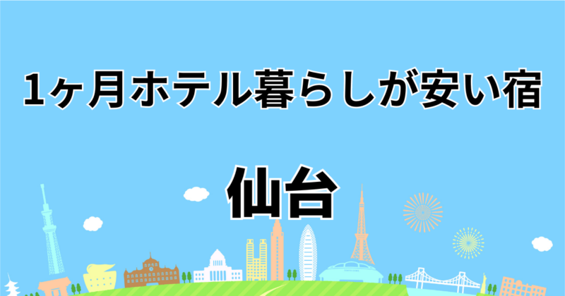 1ヶ月ホテル暮らしができる仙台の安いホテルを12カ所紹介します。 勉強のため、仕事のために1か月くらいホテルに滞在したい時、ありますよね。家と違って家事をしなくていいし、いつもとは違う環境だとやりたいことに集中できる! でも、こんなお悩みあり... -